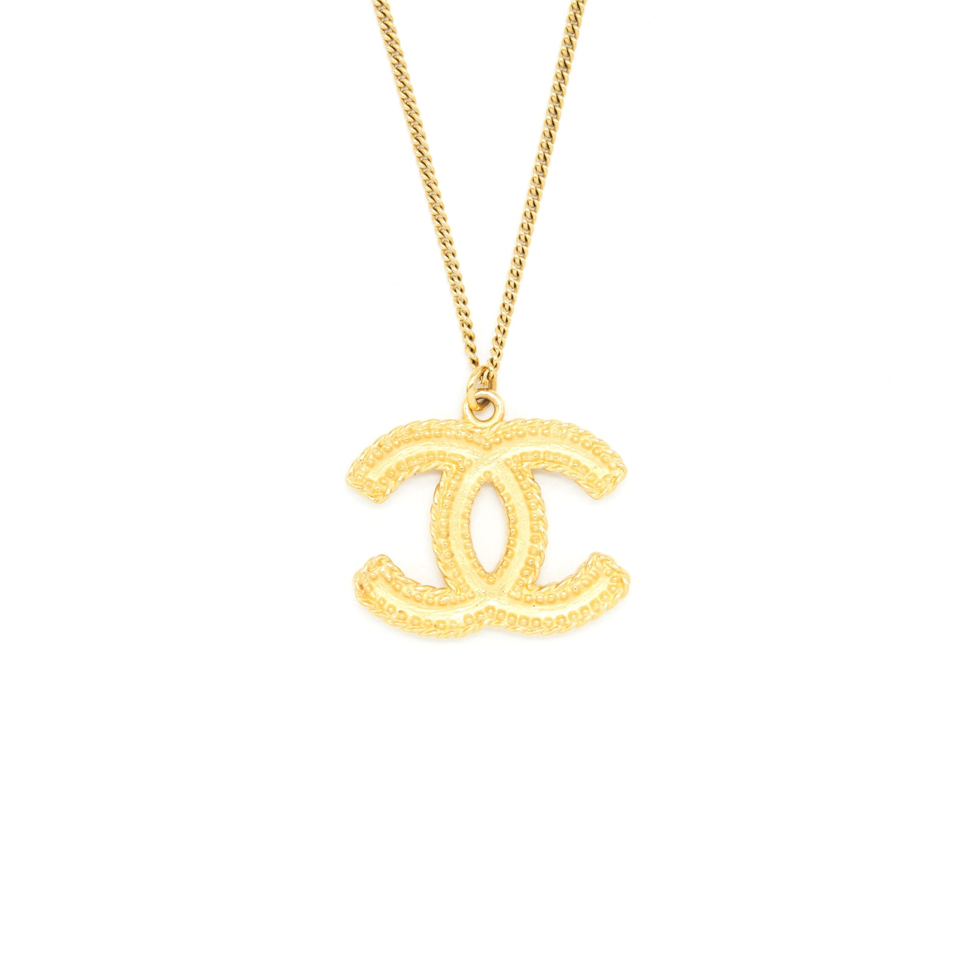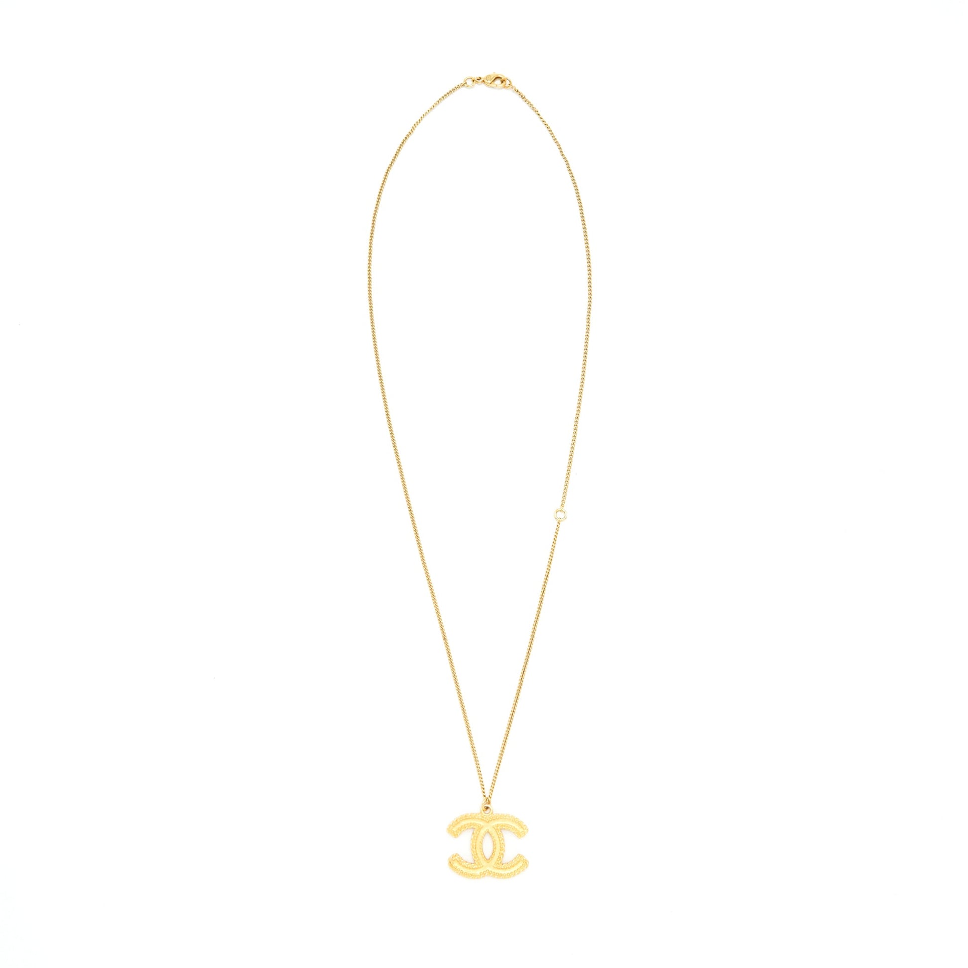 Chanel CC Logo Pendant Necklace Bright Gold Tone